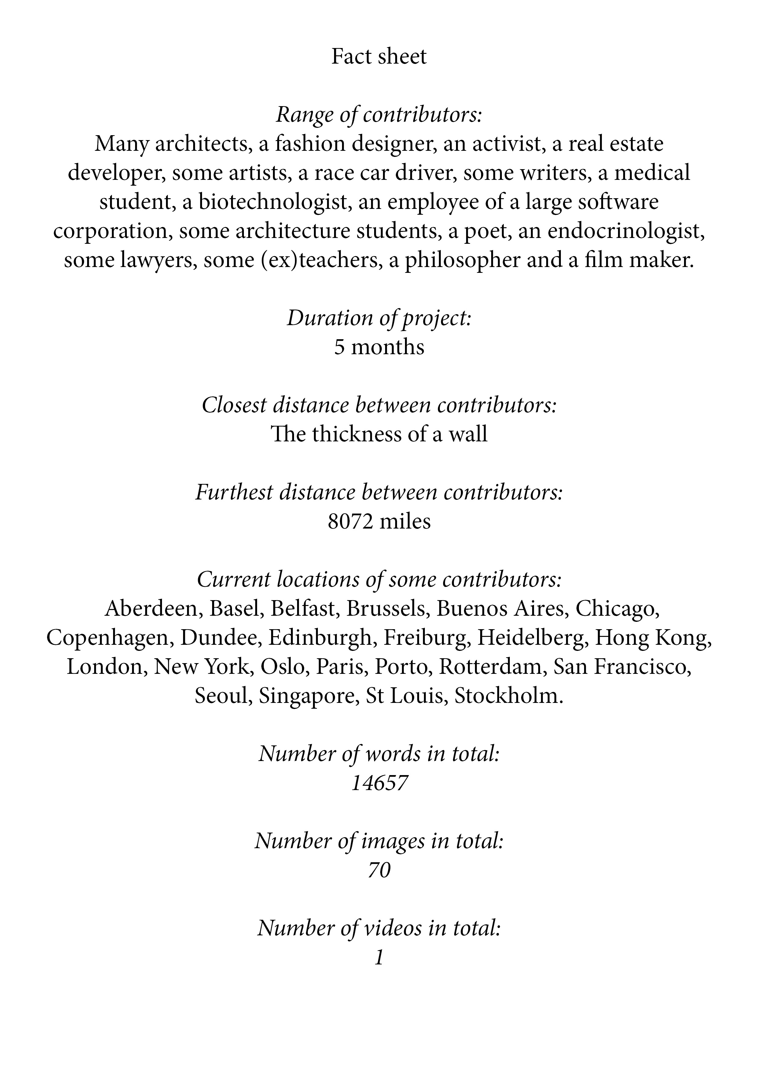 In our case we were prompted by a deafening silence amongst architects. We also noticed a lack of exchange between our closest friends, all of whom are scattered across the globe following very different trajectories.
