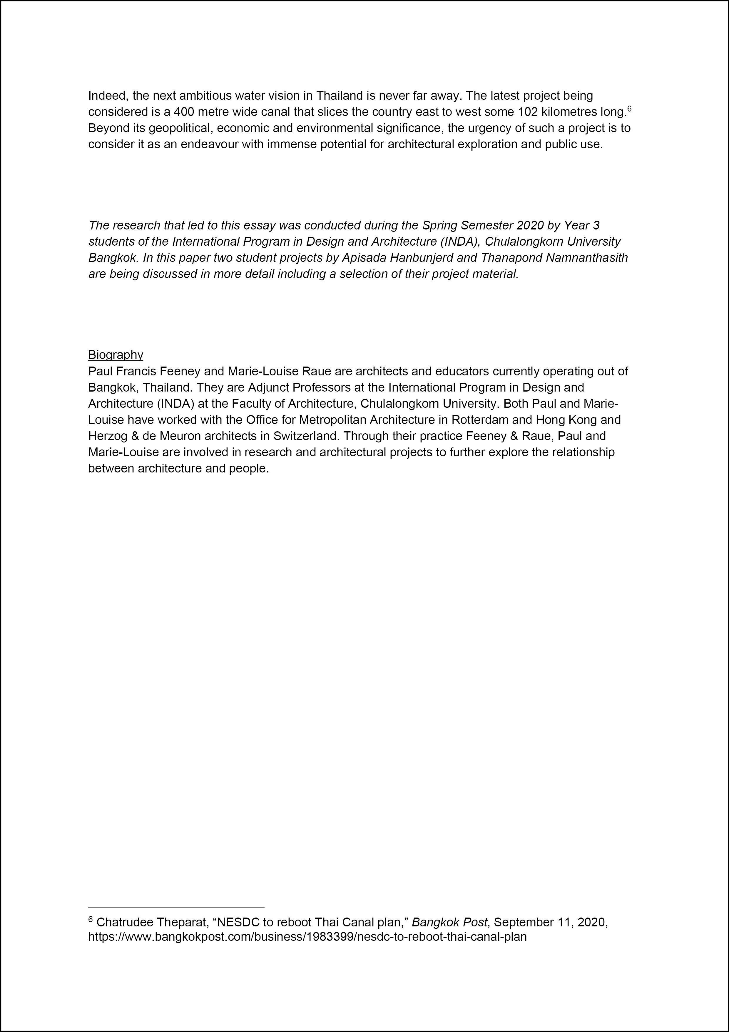 The research that led to this essay was conducted during the Spring Semester 2020 by Year 3 students of the International Program in Design and Architecture (INDA), Chulalongkorn University Bangkok. In this paper two student projects by Apisada Hanbunjerd and Thanapond Namnanthasith are being discussed in more detail including a selection of their project material.